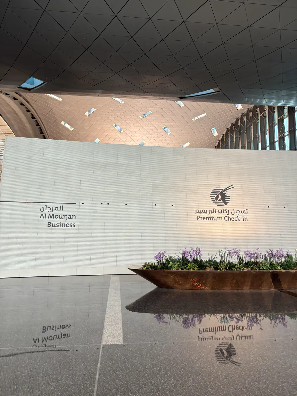 ×カタール出国まで数時間あったためラウンジを利用した。ビジネスクラスのラウンジ Al Mourjan Lounge は2つあるようであるが、小さい方の Al Mourjan Business Lounge The Gaarden を利用した。 すべてがきらびやかでシンガポールのチャンギ空港に似たものを感じた。