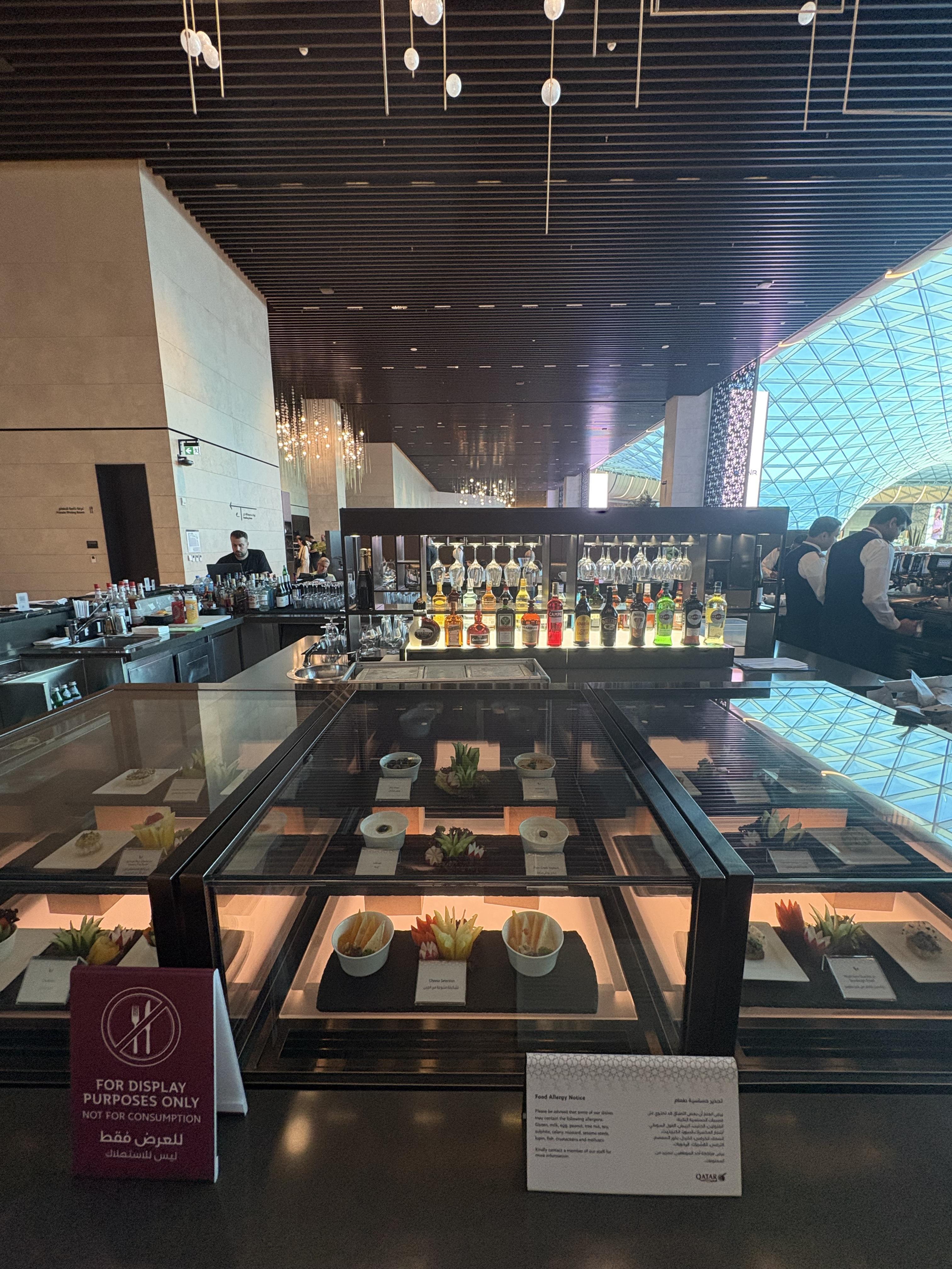 ×カタール出国まで数時間あったためラウンジを利用した。ビジネスクラスのラウンジ Al Mourjan Lounge は2つあるようであるが、小さい方の Al Mourjan Business Lounge The Gaarden を利用した。 すべてがきらびやかでシンガポールのチャンギ空港に似たものを感じた。